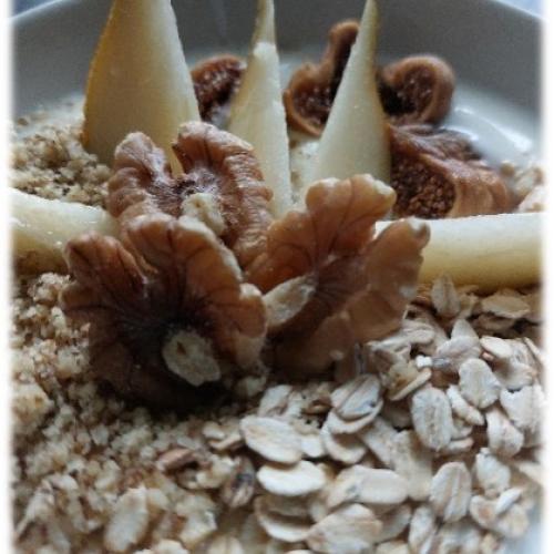 Wintermüsli Winter-MüsliRezept für 1 PortionZutaten:150g Naturjoghurt4 EL Haferflocken1 EL geriebene Walnüsse3 Walnüsse 2 getrocknete Feigen½ Birne PDF erstellen
